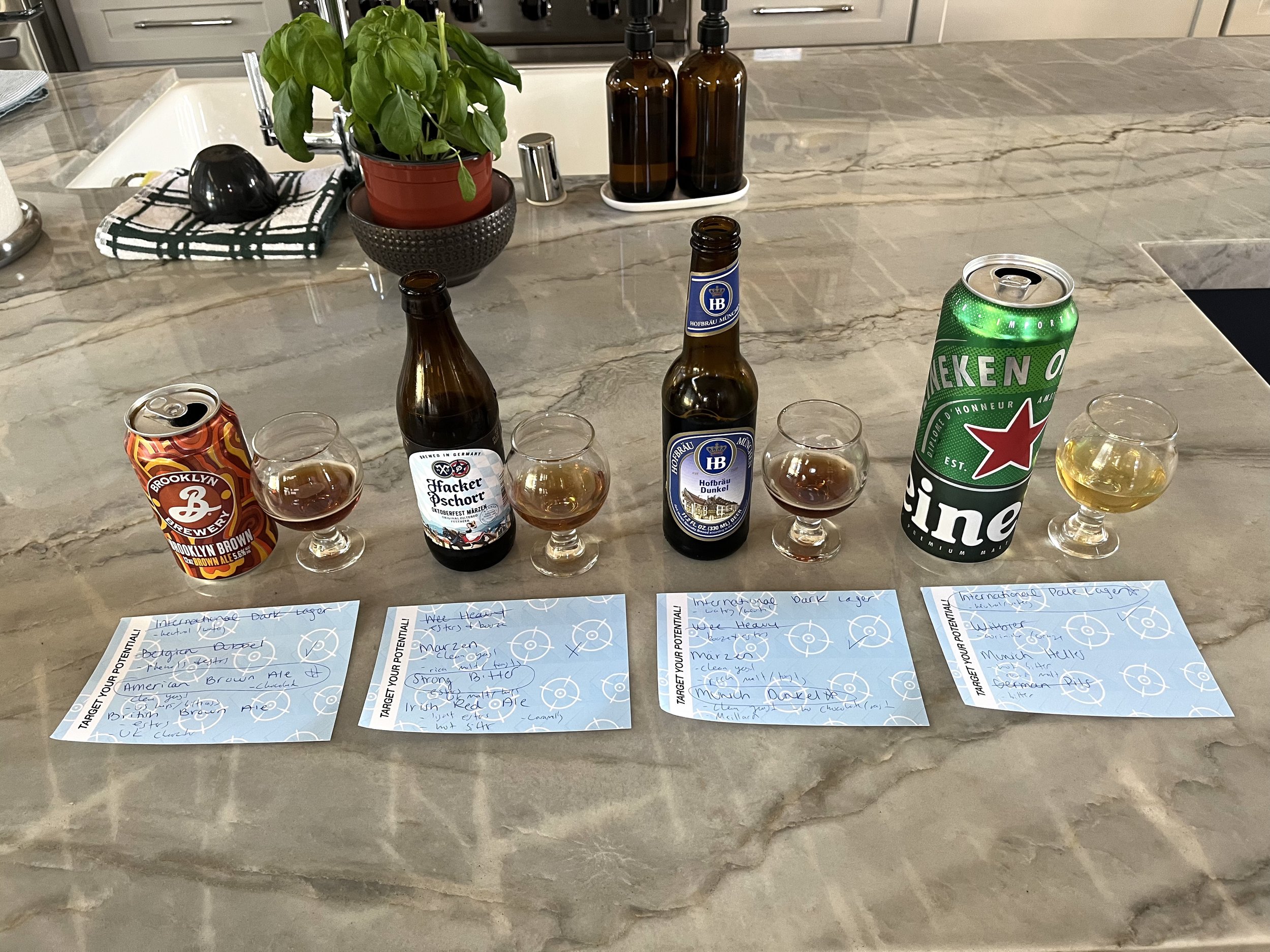 Beer 1 Choices: International Dark Lager, Belgian Dubbel, American Brown Ale, British Brown Ale