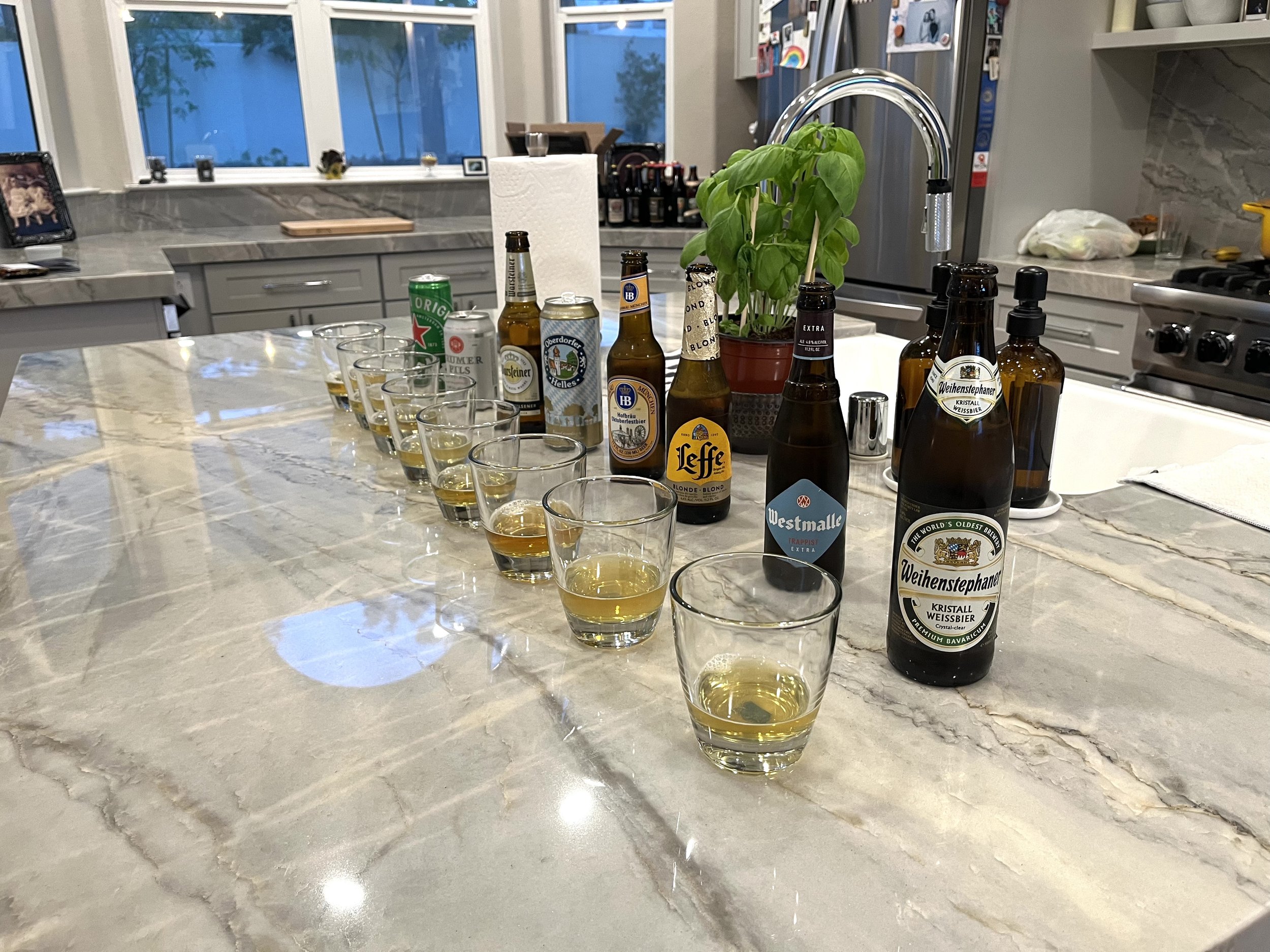 Trumer Pils: had a distinct hop-forward aroma that set it apart from the other Pils, Helles, and Heineken (seemed like tons of Saaz to me). Lots of bitterness on the palate and aftertaste.